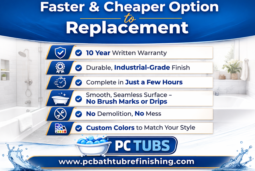 A professionally refinished tub by P&C Bathtub-Tile Refinishing LLC can last 10–15 years or more with proper care. Homeowners across Perry Hall Maryland and Baltimore County, Maryland can extend the life of their refinished bathtub by following simple maintenance guidelines and using non-abrasive cleaners.