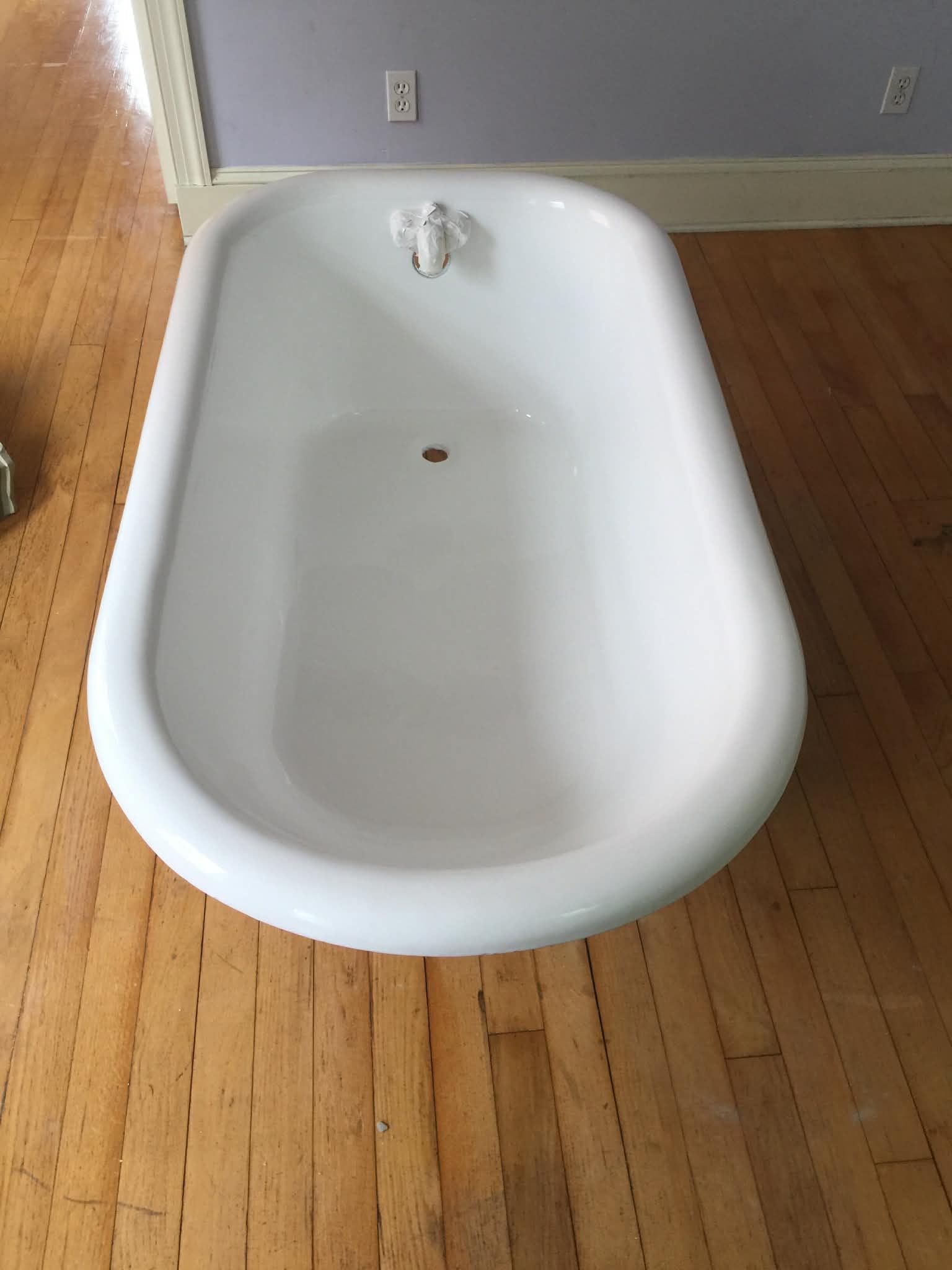 cast iron tubs. While these tubs are extremely strong, their surfaces may become worn after decades of use. Refinishing restores the enamel-like finish without replacing the entire tub.